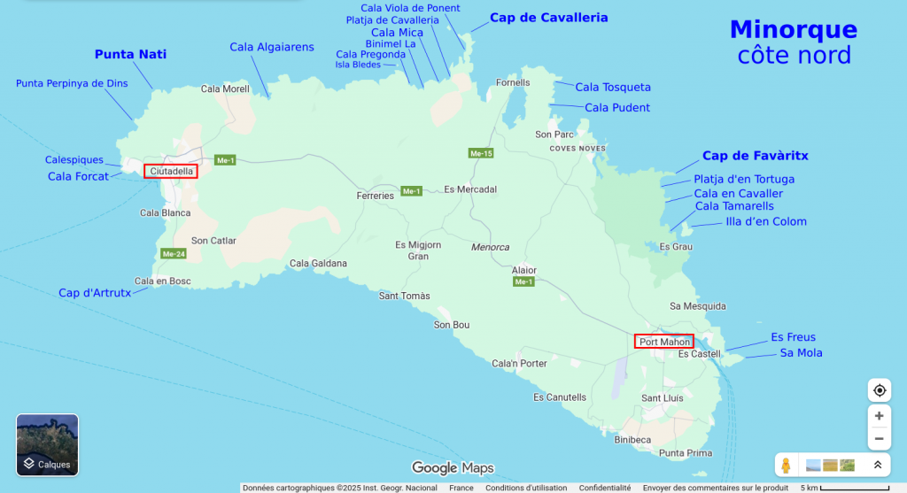 Après un aperçu général de notre tour de Minorque en 9 jours de navigation en septembre 2025, voici la première partie en détail.