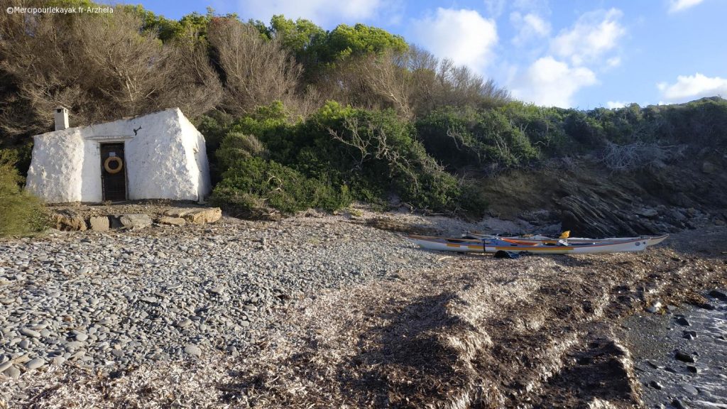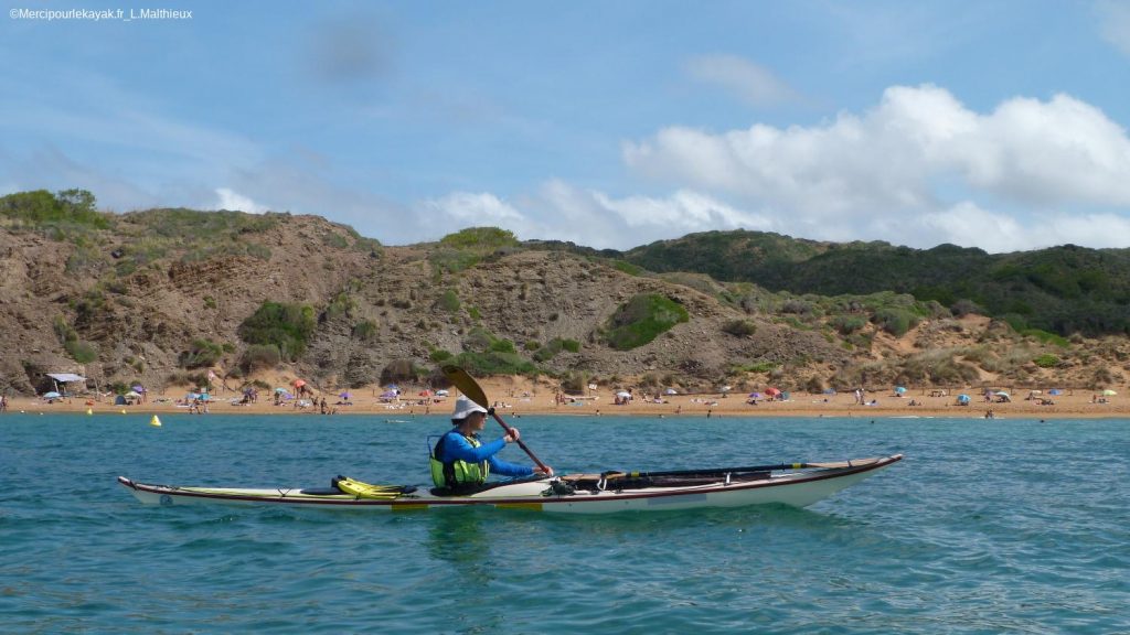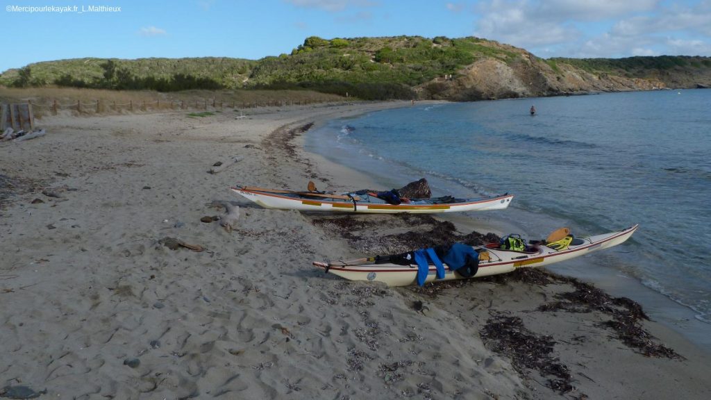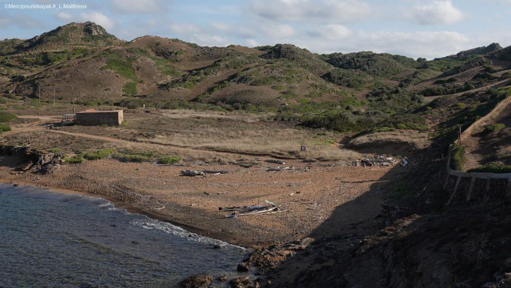 Ensuite on ne trouve encore aucun débarquement avant Cala Forcat qui possède une petite cale. A partir de là toutes les anses et plages sont urbanisées et inadaptées au bivouac en kayak, en saison de mi mai à mi octobre. Il n’y a pas non plus de camping en bord de côte. Délaissant Ciutadella à babord, nous abordons la Cala Blanca où la proximité de commerces permet le ravitaillement, avant de continuer à filer au portant vers Artrutx.
