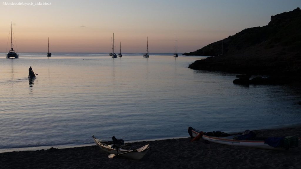 Cala Pudent est envahie, nous faisons halte pour la nuit à Cala Tosqueta. Des chèvres sauvages se dispersent dans l’environnement karstique. Le lever de soleil est salué par le chant des perdrix rouges et des œdicnèmes.