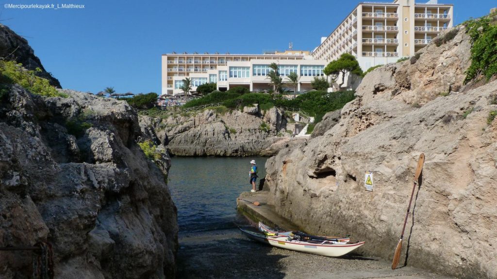 Arrivés en ferry à Mahon, nous avons laissé notre véhicule à Cala Figuera, au fond du port, où se trouve un grand parking gratuit et sous surveillance caméra. Une petite cale à 100 m permet de mettre à l’eau après un court chariotage des kayaks chargés.