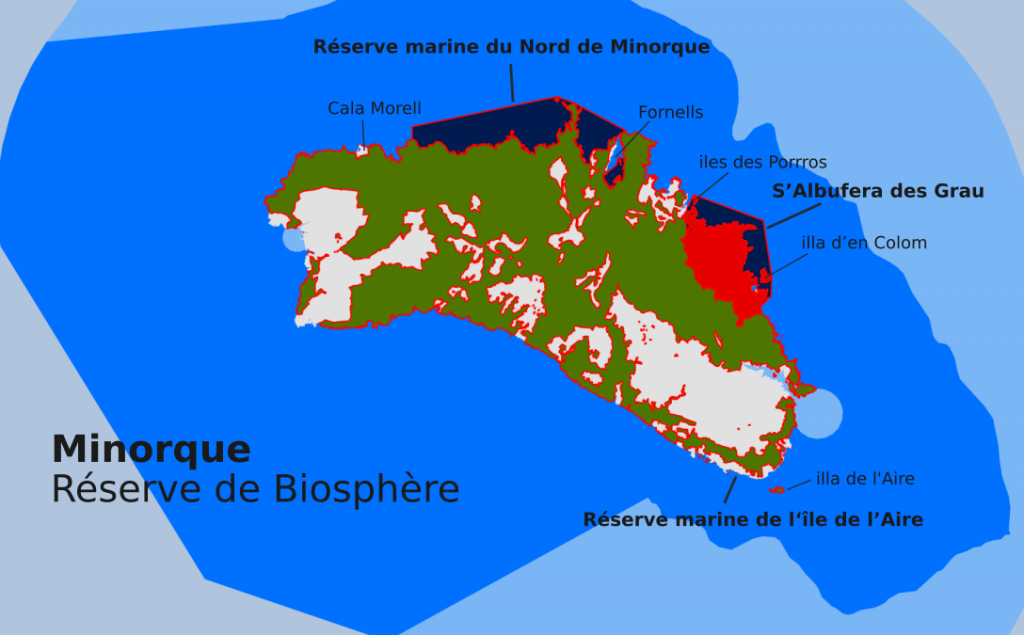 En raison du bon état de conservation de ses habitats naturels, et de leur intérêt écologique particulier, l’île de Minorque a été classée réserve de biosphère (Man and Biosphere Program) de l’UNESCO en 1993.