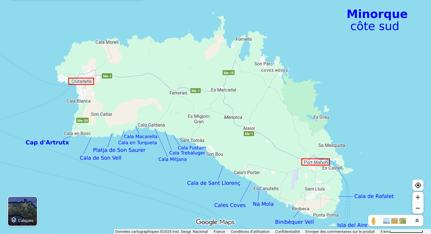 - Menorca en kayak : prestataire local qui propose la location de kayaks avec ou sans accompagnement